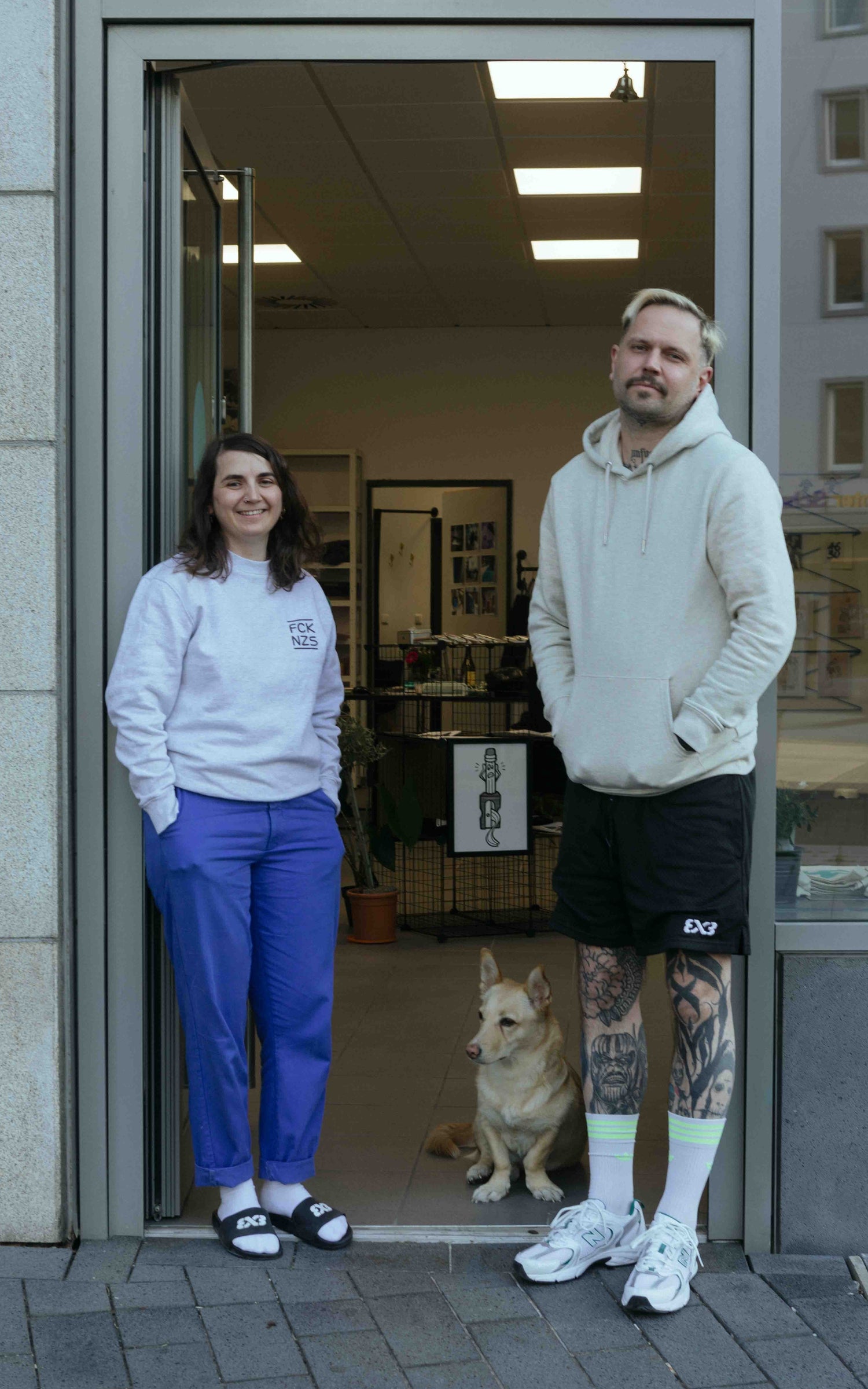 Katerina kommt aus der nachhaltigen Textilwelt, ist Modedesignerin und Textilingenieurin und legt mit ihrem Label Kokolor den Fokus auf Zero-Waste, Kreislaufsysteme und nachhaltige Produktion. Steven kommt aus dem urbanen Raum, hat mit 4630 eines der ersten Stadtlabels Bochums aufgebaut, ein Tattoo-Studio gemanagt – ohne je selbst zu tätowieren – und setzt sich als Vereinsvorstand von „byBochum“ aktiv für lokale Sichtbarkeit und urbane Kultur ein.
